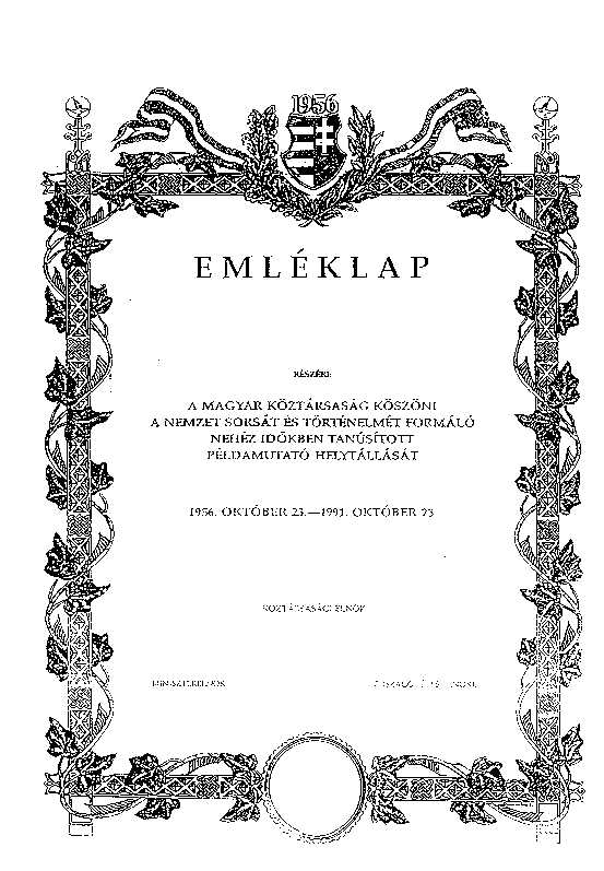 1956-os Emlékérem és Emléklap alapításáról1