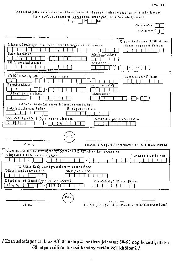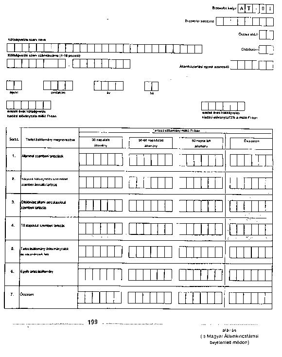 (3) A záradékkal ellátott bizonylatokat, a melléklet szerinti – költségvetési (al-) cím bontású, külön-külön csapat- és központi tagozatú – összesített adatszolgáltató bizonylatokkal együtt a HM KPSZH részére a tárgyhónapot követő hónap 6-ig megküldik. A melléklet szerinti összesített adatszolgáltatási bizonylatot (AT-01) a tartozásállomány hiánya (nemleges jelentés) esetén is kitöltve meg kell küldeni.