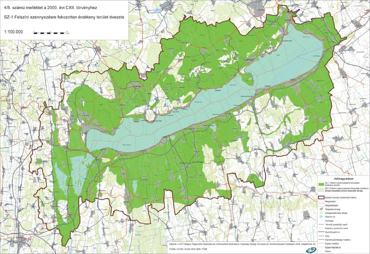 5. felszíni szennyezésre fokozottan érzékeny terület: a Balaton Kiemelt Üdülőkörzet Területrendezési Tervében lehatárolt övezet, amely az Országos Területrendezési Tervről szóló 2003. évi XXVI. törvény (a továbbiakban: OTrT) „Kiemelten érzékeny felszín alatti vízminőség-védelmi terület” övezetének feleltethető meg, amely az országos övezet által érintett területek pontosításával és a felszín alatti vizek védelméről szóló kormányrendelet által meghatározott érzékenységi kategóriáival érintett területekkel kiegészítve került lehatárolásra;