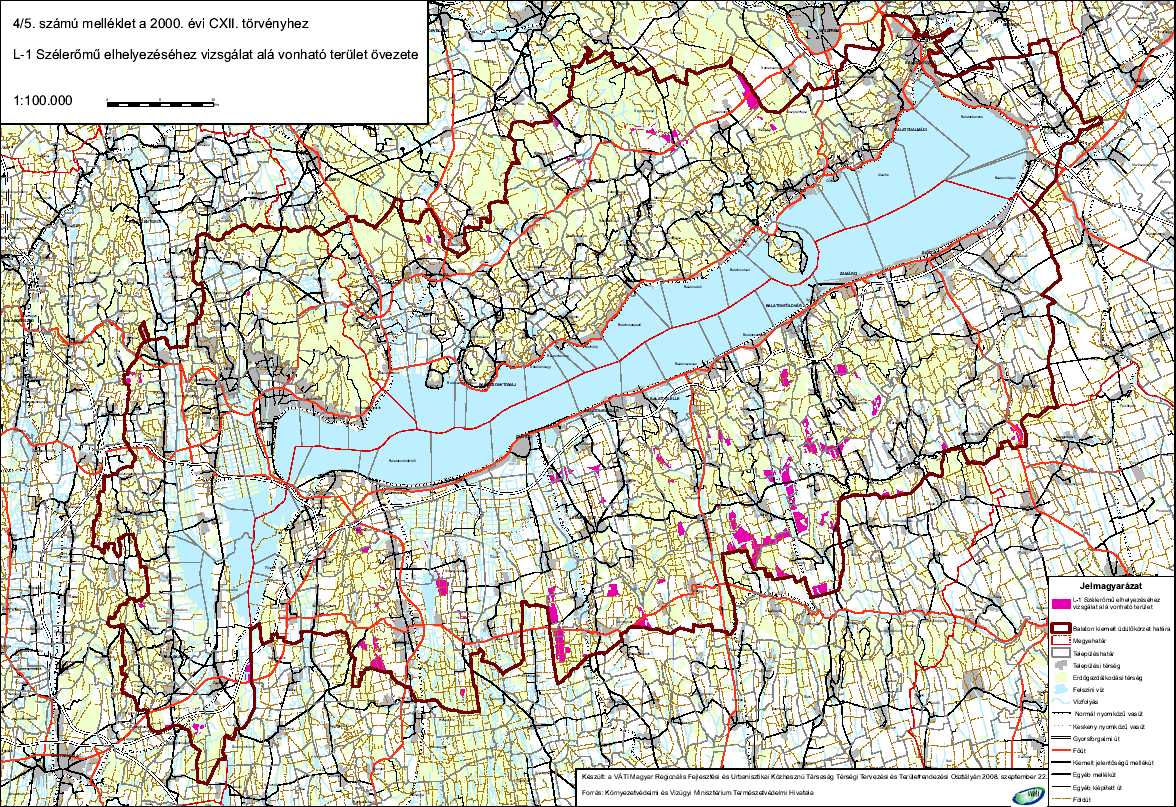 e) a 4/5. számú melléklet a szélerőmű elhelyezéséhez vizsgálat alá vonható terület övezetét (L-1),