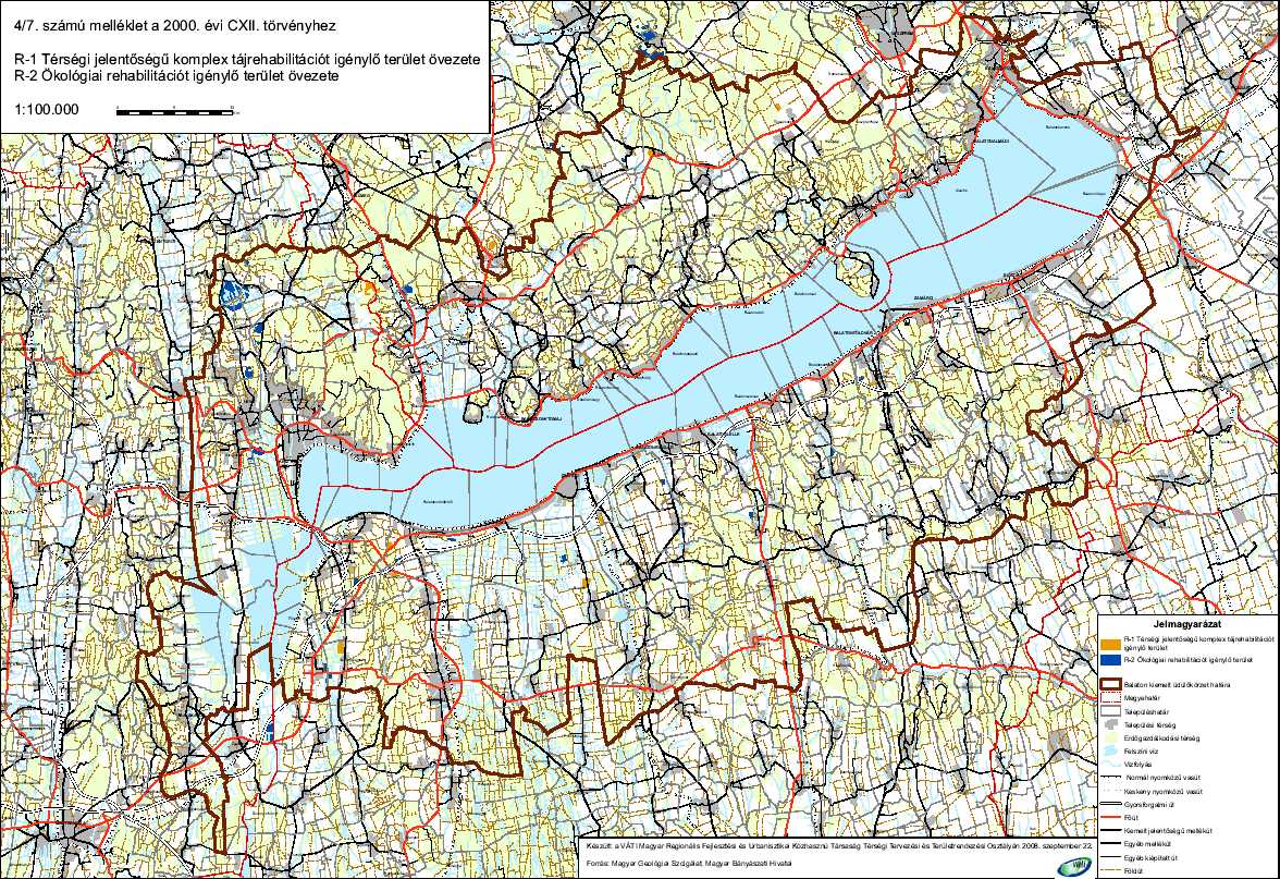 g) a 4/7. számú melléklet a térségi jelentőségű komplex tájrehabilitációt igénylő terület övezetét (R-1), az ökológiai rehabilitációt igénylő terület övezetét (R-2),