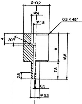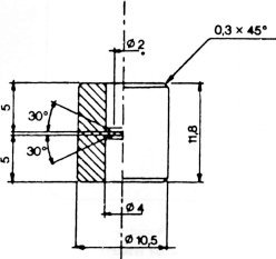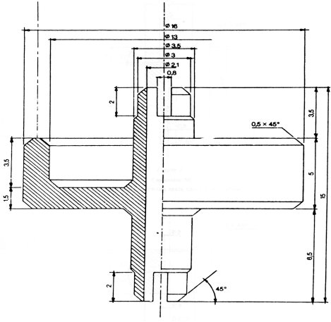 Az összekötőelem (1. ábra) dúralumíniumból vagy sárgarézből készül. Úgy van kialakítva, hogy egy polietilén adapteren keresztül különböző szeleprendszerekhez csatlakoztatható. A bemutatott eszköz példaként szolgál; más összekötőelemek is használhatók (lásd a 2. és 3. ábrát). A mintagyűjtő palack (4. ábra) kívül átlátszó, műanyag védőréteggel bevont opálüvegből készül. 50–100 ml minta befogadására alkalmas. A palack egy bemerülő cső nélküli aeroszol szeleppel van ellátva.