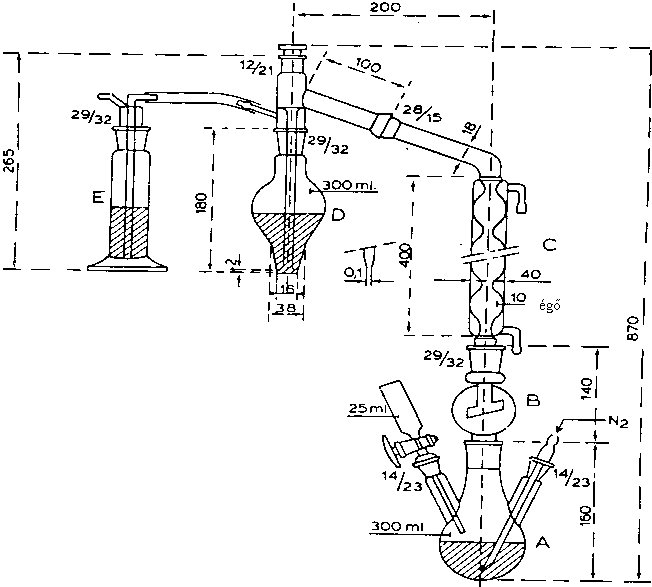 – vigyázva, hogy anyagveszteség ne történjék, teljesen távolítsuk el az illékony alkotókat 40 °C-os vízfürdőn rázatva a mintát. Vegyük le az összekötőelemet.