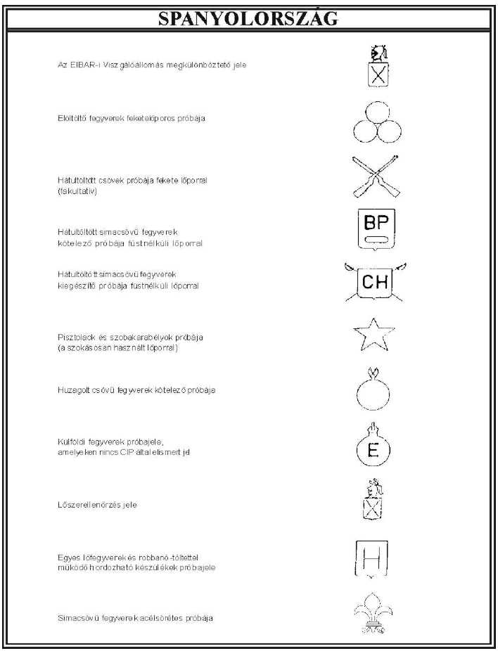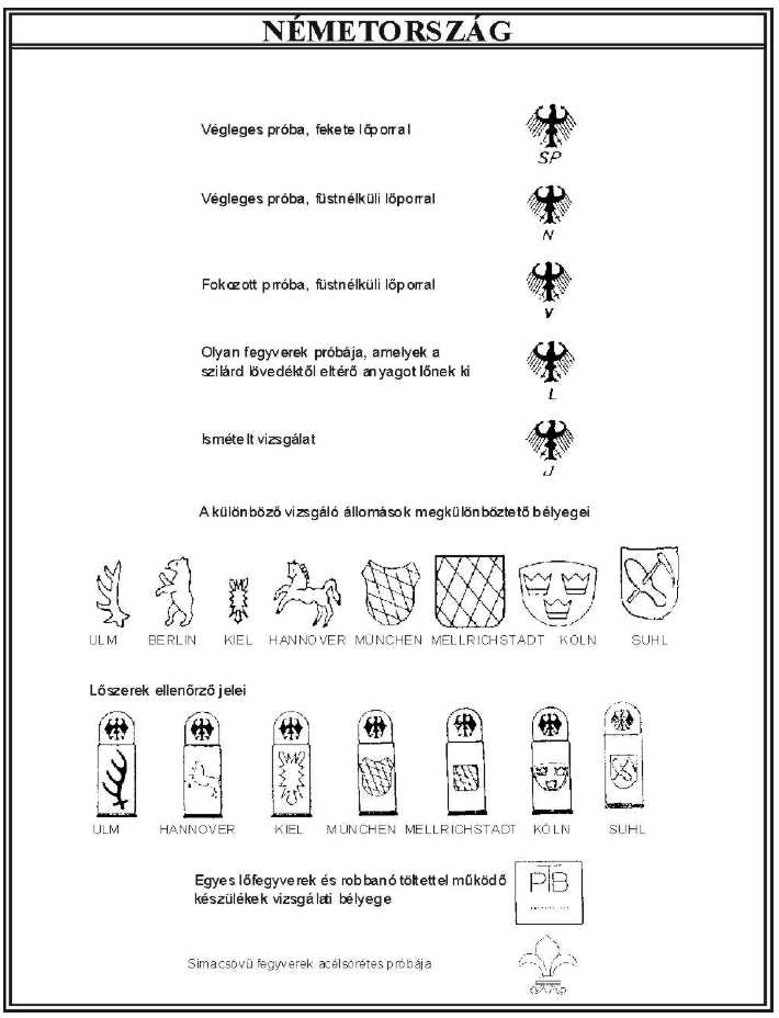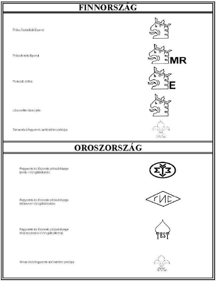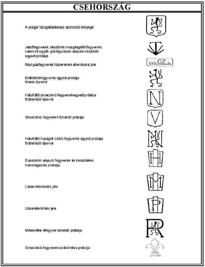 8. §18 Szemlére kell bemutatni azt a fegyvert, amelyen Magyarország által elismert külföldi próbajelek (a továbbiakban: elismert próbajel) találhatóak, de a vizsgálatról nem rendelkezik tanúsítvánnyal. Az elismert próbajeleket az 1. melléklet tartalmazza.