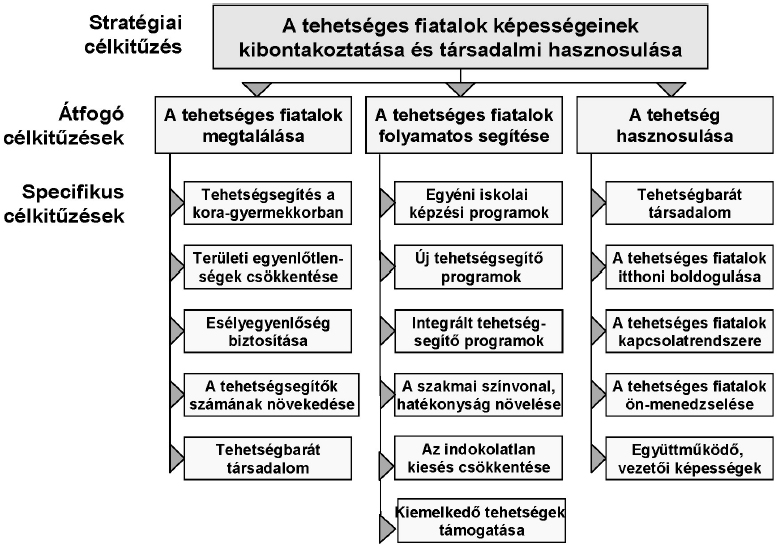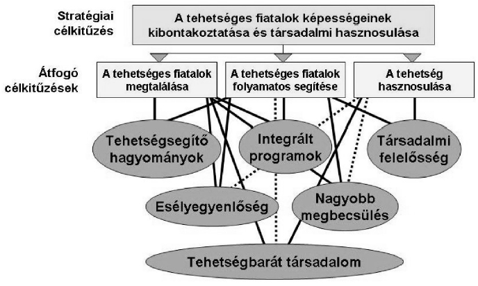 Az alábbi ábra összefoglalóan mutatja be a Nemzeti Tehetség Program prioritásaival összefüggő programelemek várható eredményeinek a Nemzeti Tehetség Program célrendszerével való összefüggését: