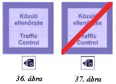 „zs/5) „Közúti forgalom ellenőrzése” (36. ábra); a járművek elhaladási sebességének ellenőrzésére szolgáló sebességellenőrző berendezés fix telepítését – a berendezéstől számított ésszerű távolságra – e táblával kell jelezni. Az átlagsebesség-ellenőrző rendszerrel ellátott útszakasz kezdetét a „Közúti forgalom ellenőrzése” (36. ábra), az ellenőrzött útszakasz végét a „Közúti forgalom ellenőrzésének vége” (37. ábra) jelzőtábla jelzi.