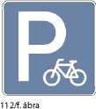 „e) „Várakozóhely” (110. ábra); a tábla a járművek kijelölt várakozóhelyét jelzi, a tábla alatt elhelyezett kiegészítő tábla jelezheti a várakozó helyen kötelező elhelyezkedés módját (pl. a jobb oldali kerekekkel a járdára állva kell várakozni) (111. ábra), vagy azt, hogy a várakozóhely kizárólag bizonyos járművek (pl. csak személygépkocsik 112. ábra, csak kerékpárok 112/c. és 112/f. ábra, mozgáskorlátozott személyt szállító jármű 115. ábra és 115/a. ábra) részére van fenntartva. Ahol a várakozást ellenőrző óra van, kiegészítő tábla (113. ábra) jelezheti azt az időszakot, amelyben a várakozást ellenőrző óra (parkométer) vagy jegykiadó automata működtetése kötelező, vagy a kiegészítő tábla jelezheti azt is, hogy várakozni csak meghatározott időtartamig és a 41. § (4)–(5) bekezdésében foglaltak megtartásával szabad (113. és 114. ábra). A mozgáskorlátozottakat szállító járművek részére fenntartott várakozóhelyet kiegészítő tábla (115. ábra) vagy külön jelzőtábla (115/a. ábra) jelezheti;