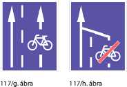 „g/6. „Nyitott kerékpársáv” (117/g. ábra); a tábla a kerékpárosok egyirányú közlekedésére kijelölt kerékpársáv úttesten történő elhelyezkedését jelzi;