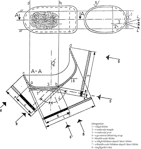 Megj.: Az ábrázolás ellenére a látszó felület a fénykibocsátó felületet érintő felület.