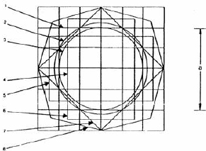 9.3. a megfigyelő szeme által befogott 1. és 2. zónák határolása azok síkjaiban a következőképpen történik: