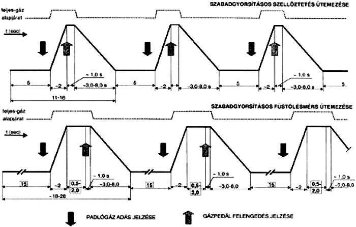 Ha a megközelítően azonos tgy gyorsulási idő alatt végzett utolsó három szabadgyorsítás során mért csúcsértékek közötti legnagyobb eltérés
