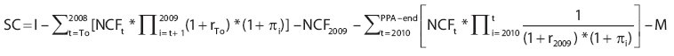 (3) Az éves számítások során az SC képletben szereplő I értéke, az M nem diszkontált értéke, az r2009 tényező, és a 2008. december 31-ig felmerült nettó pénzáramlások nem változnak. Az eredményről a Hivatal a tárgyévet követő év április 30-ig tájékoztatja a pénzügyminisztert.