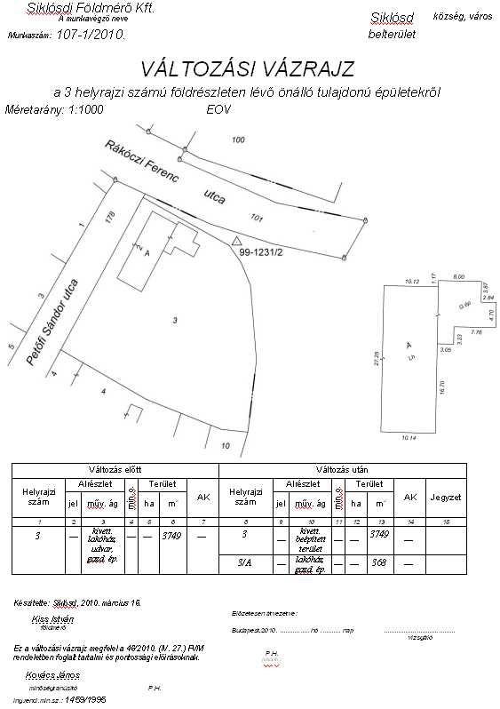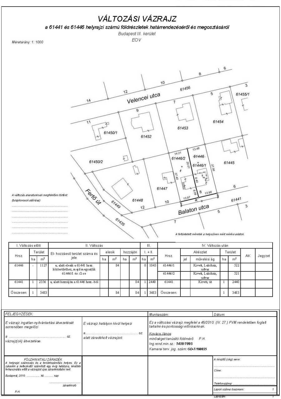 10. § (1) A változási vázrajzon a készítőnek fel kell tüntetni: