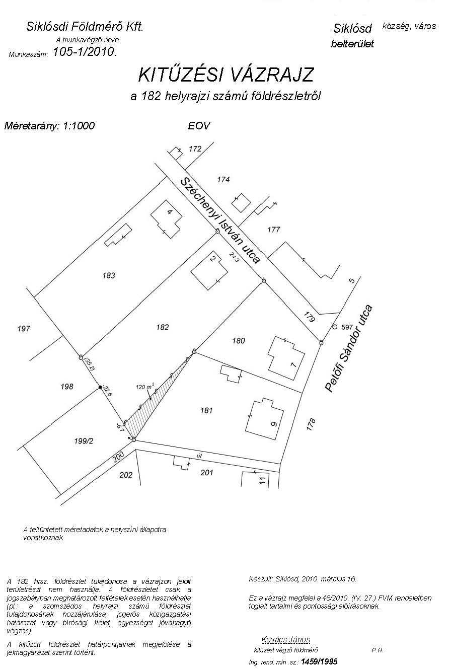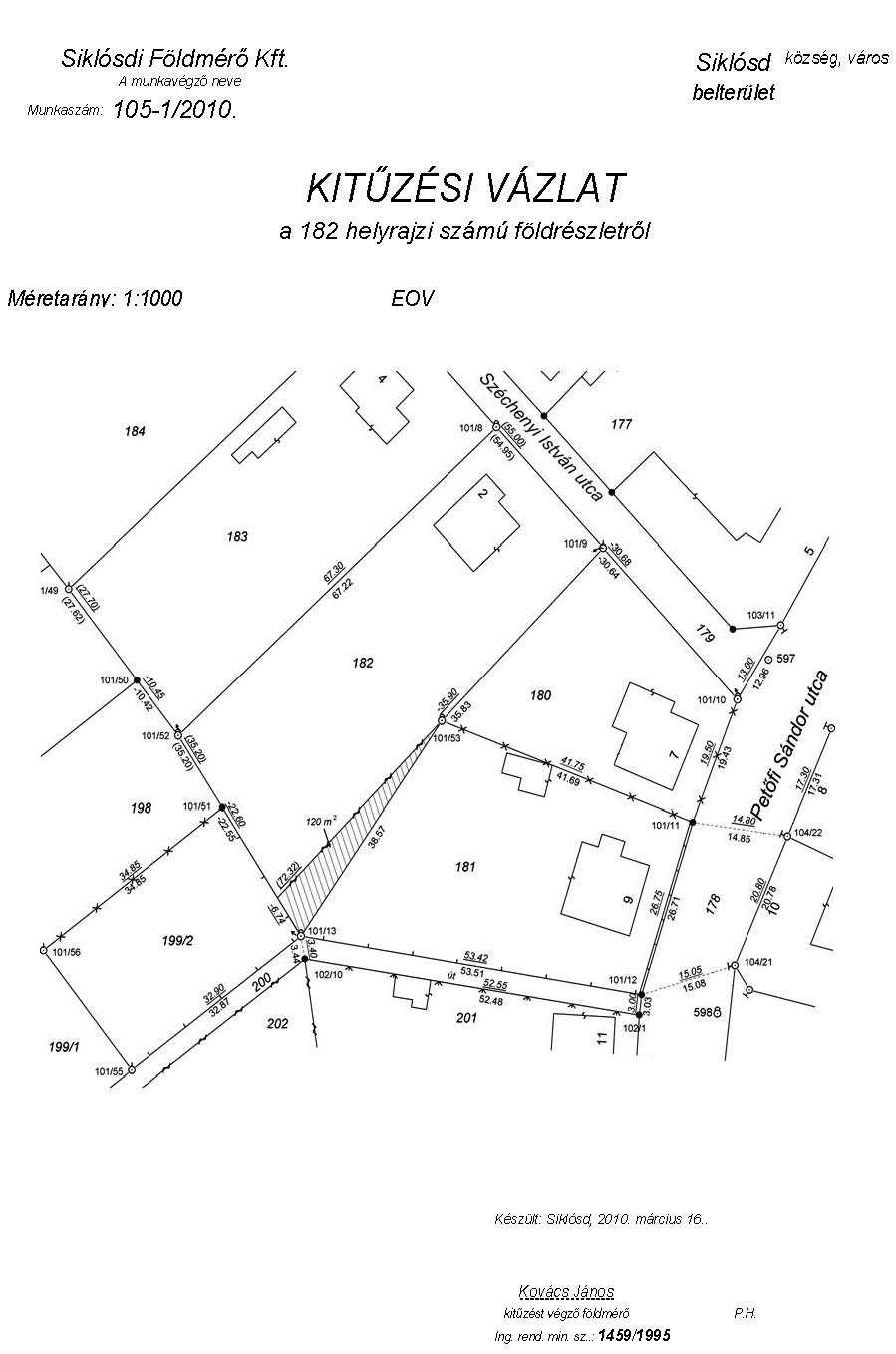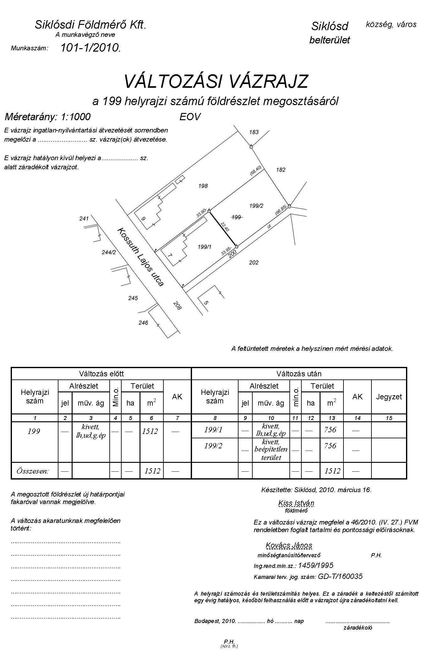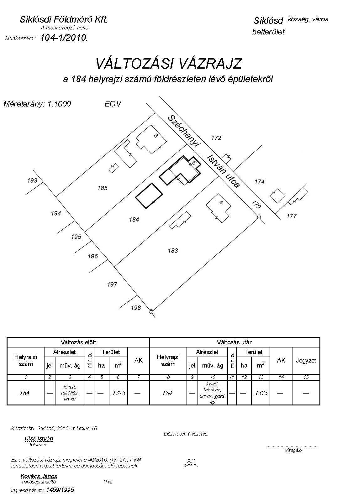 b) a földmérő nevét (nyomtatott betűvel) és aláírását;