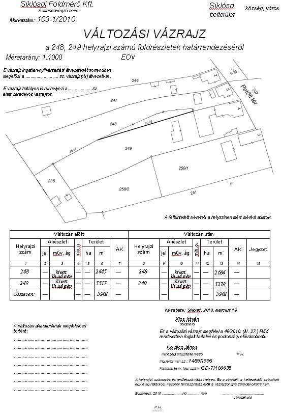 14. változási vázrajz: az ingatlan-nyilvántartási térképi adatbázis tartalmának felhasználásával készített digitális és papír alapú földmérési munkarész;