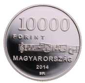 (2) Az emlékérme előlapján, a középmezőben a Szózat kottarészletének ábrázolása látható. A kottarészlet fölött, két vízszintes sorban a „10 000” értékjelzés és kissé balra a „FORINT” felirat olvasható. A kottarészlet alatt, három vízszintes sorban a „MAGYARORSZÁG” felirat, a „2014” verési évszám és a „BP.” verdejel olvasható. Az emlékérme előlapjának képét az 1. melléklet tartalmazza.