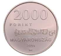 (2) Az emlékérme előlapján, a középmezőben a Szózat kottarészletének ábrázolása látható. A kottarészlet fölött, két vízszintes sorban a „2000” értékjelzés és kissé balra a „FORINT” felirat olvasható. A kottarészlet alatt, három vízszintes sorban a „MAGYARORSZÁG” felirat, a „2014” verési évszám és a „BP.” verdejel olvasható. Az emlékérme előlapjának képét az 1. melléklet tartalmazza.
