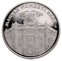 (3) Az emlékérme hátlapján a Magyar Nemzeti Bank épülete Bank utca felőli részletének ábrázolása látható. Az emlékérme szélén, felső köriratban a „MAGYAR NEMZETI BANK” felirat, alatta középen – díszítő motívummal keretezve – az „1924” évszám olvasható. Az emlékérme szélén, a felső körirat alatt, jobb oldalon Kereszthury Gábor tervezőművész mesterjegye látható. Az emlékérme hátlapjának képét a 2. melléklet tartalmazza.