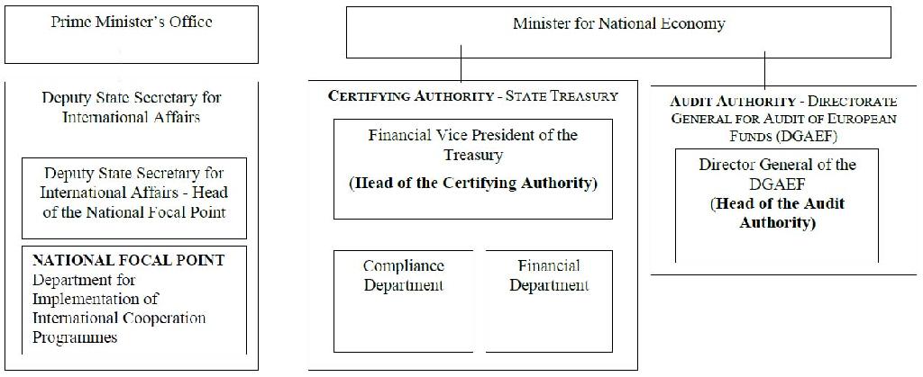The Department for Implementation of International Cooperation Programmes, within the Deputy State Secretariat for International Affairs, shall be responsible for implementing the tasks of the National Focal Point.