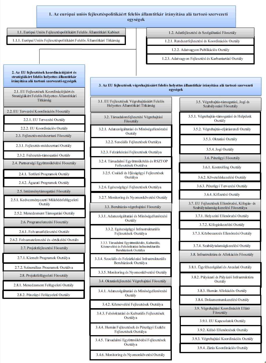 1. Az európai uniós fejlesztéspolitikáért felelős államtitkár irányítása alá tartozó szervezeti egységek