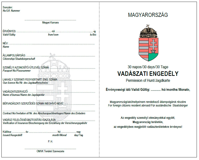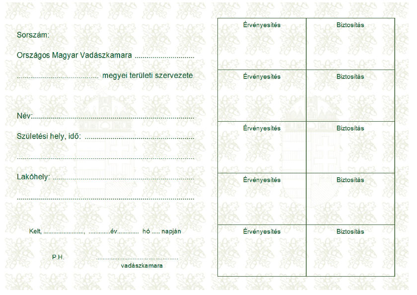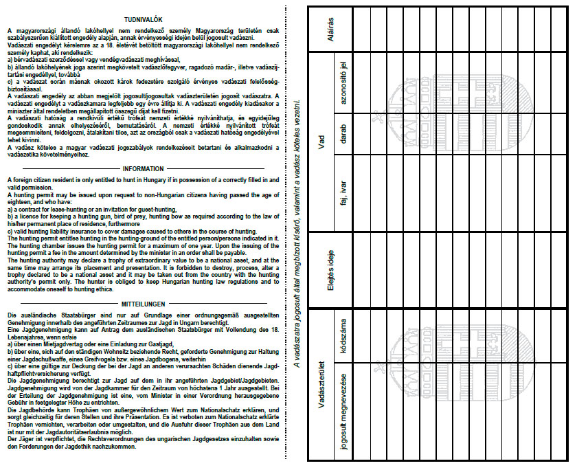 vadászaton részt vevők neve, vadász vendég vadászjegy/engedély száma |