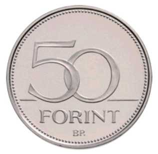 (3) Az érme hátlapjának szélén található gyöngysorszegélyen belül, a középmezőben – kissé egymásra csúsztatott számjegyekből álló – „50” értékjelzés, az értékjelzés bal és jobb oldalán, alul díszítővonal látható. Az értékjelzés alatti két vízszintes sorban a „FORINT” felirat és a „BP.” verdejel olvasható. Az érme hátlapjának képét a 2. melléklet tartalmazza.