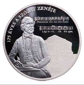 1. § (1) A Magyar Nemzeti Bank – a Szózat megzenésítésének 175. évfordulója alkalmából – a „Szózat megzenésítése” megnevezéssel 20 000 forintos címletű ezüst emlékérmét bocsát ki.