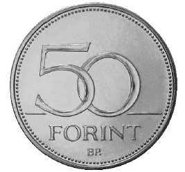 (3) Az érme hátlapjának szélén található gyöngysorszegélyen belül, a középmezőben – kissé egymásra csúsztatott számjegyekből álló – „50” értékjelzés, az értékjelzés bal és jobb oldalán, alul díszítővonal látható. Az értékjelzés alatti két vízszintes sorban a „FORINT” felirat és a „BP.” verdejel olvasható. Az érme hátlapjának képét a 2. melléklet tartalmazza.