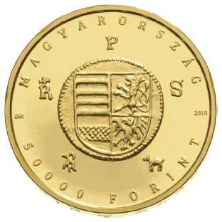 (3) Az emlékérme előlapjának szélén, felső köriratban a „MAGYARORSZÁG”, alsó köriratban az „50 000” értékjelzés és a „FORINT” felirat olvasható. A felső és az alsó köriratot középen, bal oldalon a „BP.” verdejel, jobb oldalon a „2018” verési évszám választja el egymástól. A középmezőben, gyöngysor-szegéllyel határolva az Albert király által kibocsátott aranyforint előlapján megjelenő négyrészű címerpajzs alapján készült ábrázolás látható, melyet öt, korabeli aranypénzek hátlapján megtalálható verde- és mesterjegy vesz körül. Az emlékérme előlapjának képét az 1. melléklet tartalmazza.