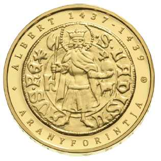 1. § (1) A Magyar Nemzeti Bank – az Albert király által kibocsátott aranyforint emlékére – „Albert aranyforintja” megnevezéssel 50 000 forintos címletű, szélfelirattal ellátott arany emlékérmét bocsát ki.