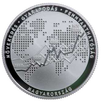 (2) Az emlékérme előlapján, körvonallal határolt középmezőben a BUX-index árfolyamának alakulását bemutató és – a háttérben – a nemzetközi trendeket jelképező vonaldiagramok ábrázolása látható, kiemelt évszámokkal jelölve a Budapesti Értéktőzsde megalakulása óta eltelt időszak legfontosabb tőzsdetörténeti eseményeit. A diagramábrázolás hátterében egy – felfelé és lefelé mutató nyilakból álló – világtérkép ábrázolása látható. Az emlékérme szélén, köriratban, fent a „NÖVEKEDÉS ⋅ GYARAPODÁS ⋅ FENNTARTHATÓSÁG”, lent a „MAGYARORSZÁG” felirat olvasható. Az emlékérme előlapjának képét az 1. melléklet tartalmazza.