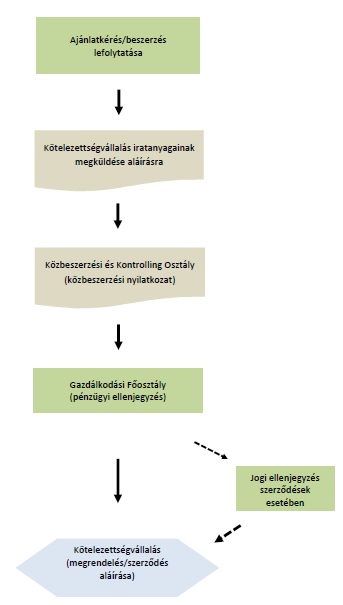 (13) A Közbeszerzési és Kontrolling Osztály a Minisztérium közbeszerzési értékhatár alatti beszerzéseiről, valamint a Kbt. kivételi rendelkezéseinek hatálya alá tartozó beszerzéseiről – a kötelezettségvállalást megelőzően rendelkezésére álló adatok figyelembevételével – nyilvántartást vezet, amely elősegíti a visszterhes beszerzések közbeszerzési szempontú kontrollját. Tekintettel arra, hogy a nyilvántartáshoz elengedhetetlen, hogy a közbeszerzési szempontú vizsgálatot követően a szerződéstervezet tartalma ne változzon, ezért bárminemű módosítás kizárólag a Közbeszerzési és Kontrolling Osztály ismételt megkeresésével kezdeményezhető. Amennyiben a szerződés vagy megrendelés aláírása végül nem történt meg, az erről szóló tájékoztatást írásban haladéktalanul szükséges a Közbeszerzési és Kontrolling Osztály részére megadni, hogy a nyilvántartásból az érintett adatsor törlésre kerüljön. A Közbeszerzési és Kontrolling Osztály nyilvántartást vezet továbbá a Minisztérium általános és központosított közbeszerzési eljárásairól is.