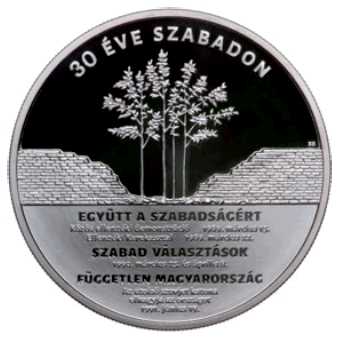 1. § (1) A Magyar Nemzeti Bank – az 1989–90-es rendszerváltoztatás 30. évfordulójáról történő méltó megemlékezés céljából meghirdetett „30 éve szabadon” emlékév alkalmából – „30 éve szabadon” megnevezéssel 30 000 forintos címletű ezüst emlékérmét bocsát ki.