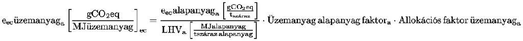 1.2.1. a bioüzemanyagokból eredő üvegházhatásúgáz-kibocsátást (E) az egy MJ üzemanyagra jutó CO2 grammjának egyenértékében kell kifejezni (gCO2eq/MJ);
