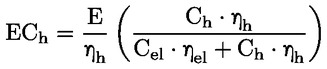 1.15. Ha az üzemanyag előállításához kapcsoltan hőt és/vagy villamos energiát előállító olyan kapcsolt energiatermelő egység, amely tekintetében kibocsátást számítanak, villamosenergia- és/vagy hasznoshőtöbbletet termel, akkor az ÜHG kibocsátást meg kell osztani a villamosenergia és a hasznos hő között a hő hőmérséklete szerint (ami tükrözi a hő hasznosíthatóságát). Az adott hőmennyiség hasznos részét úgy tudjuk megállapítani, ha energiatartalmát megszorozzuk az alábbiak szerint kiszámított Carnot-hatásfok (Ch) értékével: