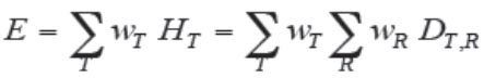 12. effektív dózis: külső és belső sugárterhelés következtében a test összes szövetét és szervét érő egyenértékdózisoknak a wT testszöveti tényezőkkel súlyozott összege; az effektív dózis jele E;